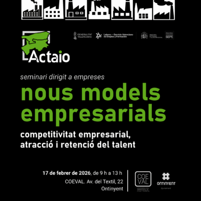 Ahir el seminari Nous models empresarials. Competitivitat, atracció i retenció del talent, organitzat per Actaio juntament amb COEVAL i l’Ajuntament d’Ontinyent, va reunir a les empreses del territori amb l’objectiu de definir nous models per a potenciar l’atracció i la fidelització del nou talent.